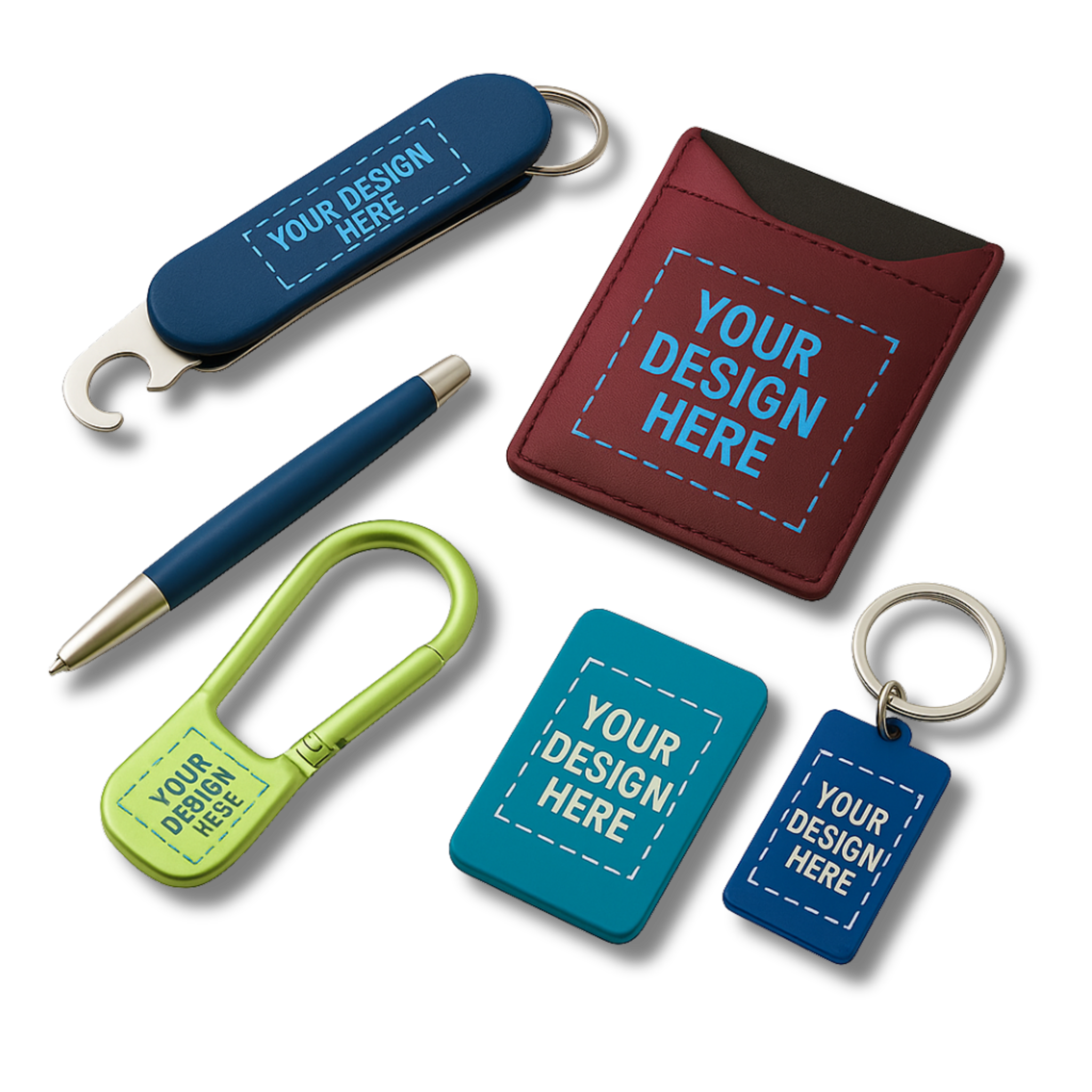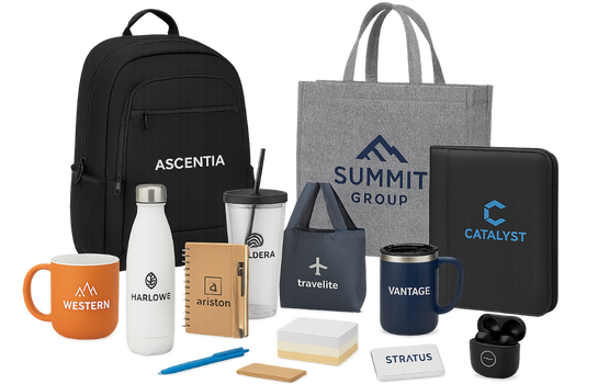 "Custom-branded essentials that keep your business top of mind — from office gear to everyday carry."
